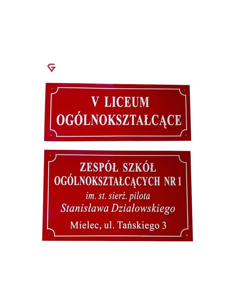 Tablica na budynek dla szkół, instytucji państwowych, urzędów, placówek administracyjnych.