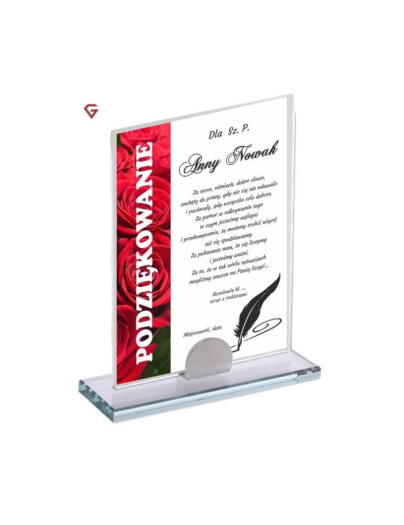 Pamiątka szklana z podziękowaniami dla nauczyciela z okazji zakończenia roku szkolnego lub dnia nauczyciela.