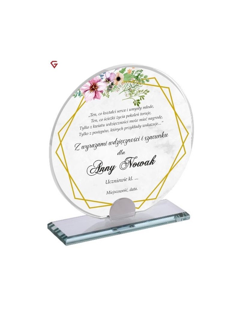 Subtelne szkło z podziękowaniami dla nauczyciela z okazji zakończenia roku szkolnego lub dnia nauczyciela
