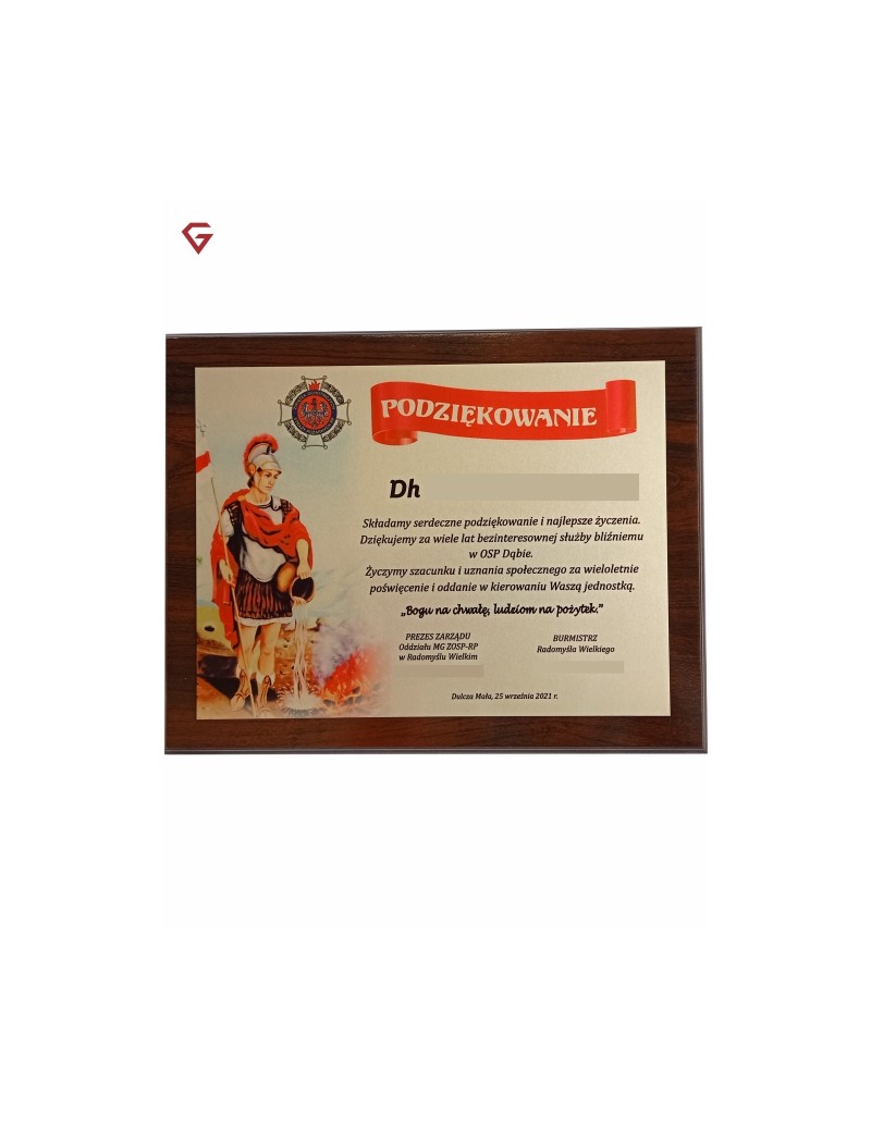 Treść podziękowania jest tylko przykładowa. Na życzenie możemy dodać tekst, zdjęcie oraz logo OSP przesłane przez Klienta.
