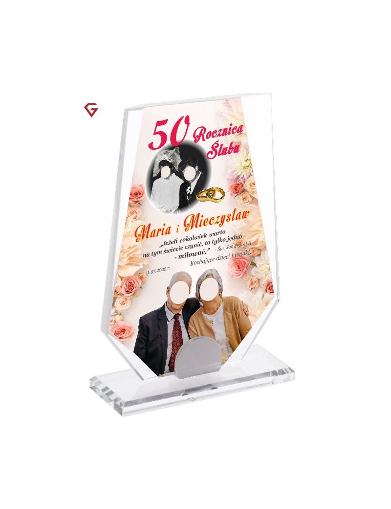 Niepowtarzalny kształt sprawia, że sprawdzi się ona jako wyjątkowy upominek. Możliwość zastosowania dwóch zdjęć - starego i nowego - na pewno przywoła piękne wspomnienia z dnia zaślubin.
