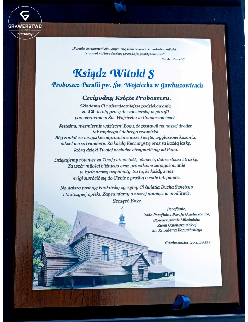 Proponujemy personalizowany prezent ze zdjęciem konkretnego kościoła i osobistymi życzeniami, który będzie na pewno niezapomnianą pamiątką dla kapłana.