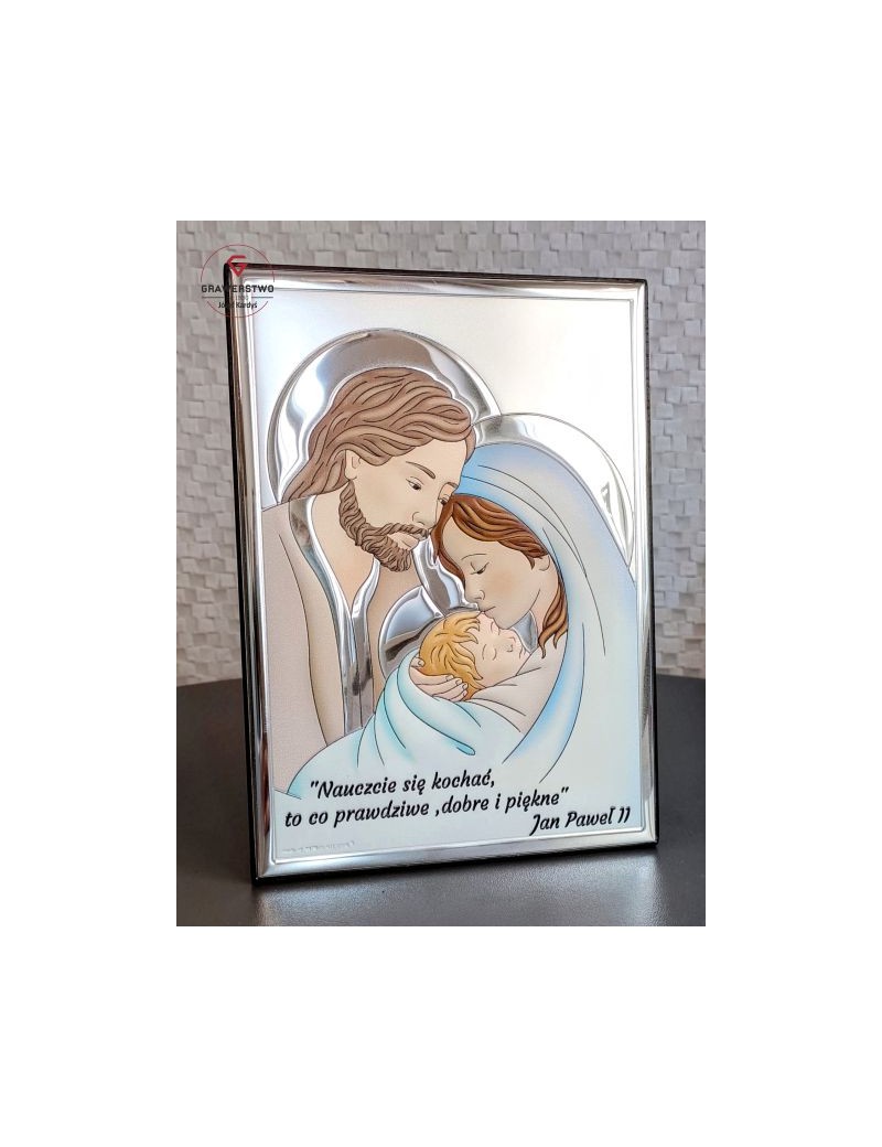 Wizerunek zamontowany jest na pięknej drewnianej podstawie, która stanowi miejsce grawerunku.