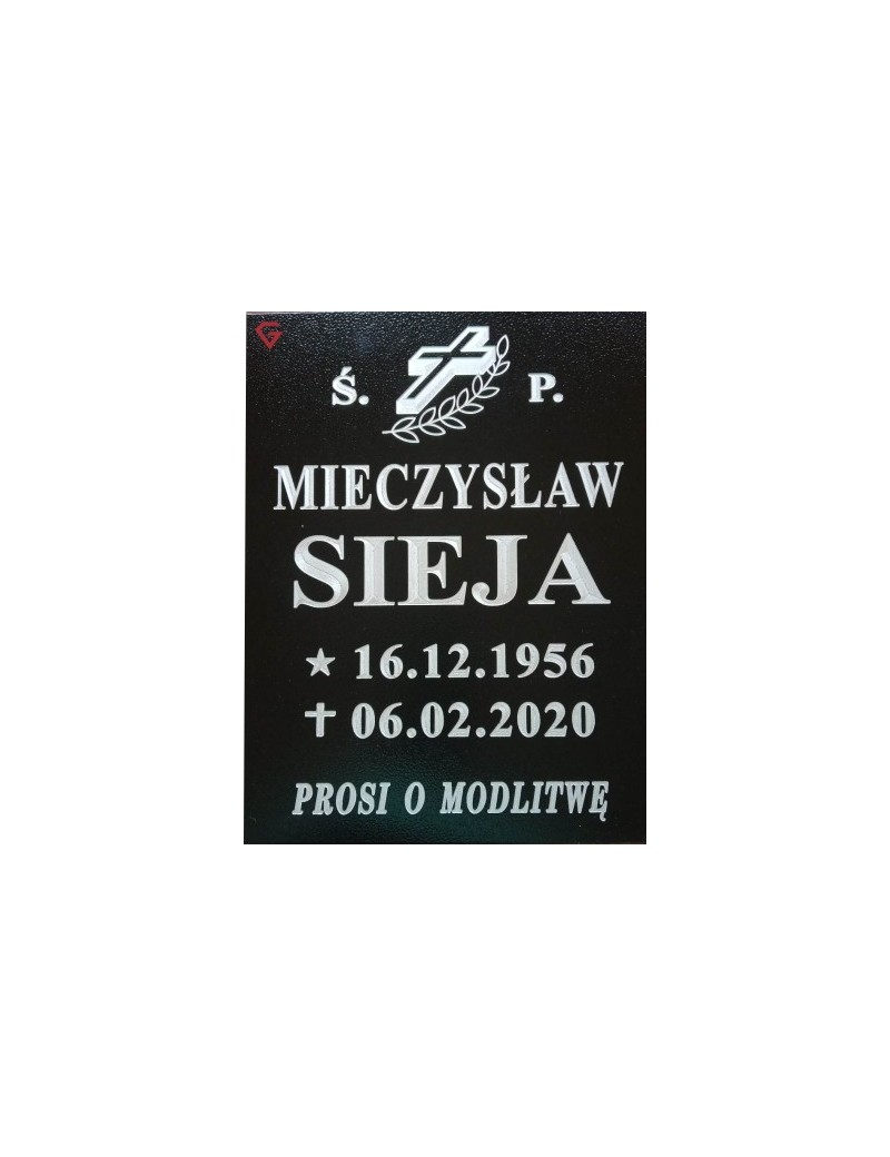 Tablica nagrobkowa aluminiowa z jednym nazwiskiem.