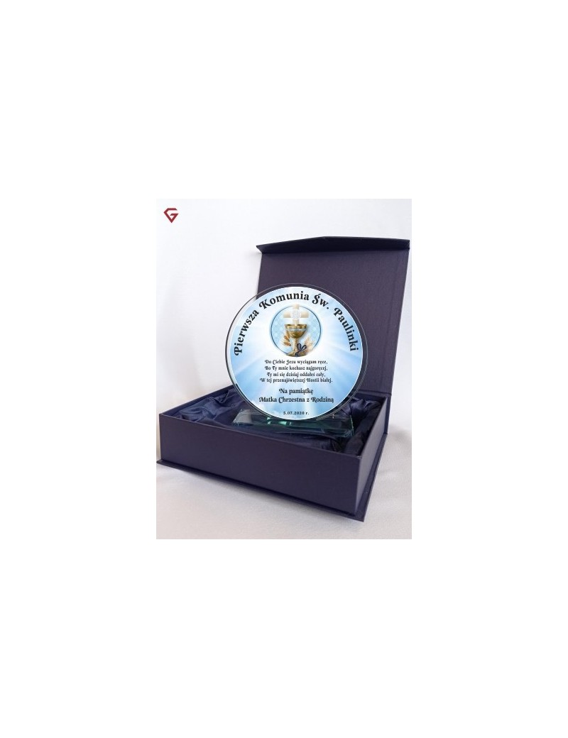 Obrazek wykonany jest z aluminiowej blaszki umieszczonej na podkładzie szklanym.