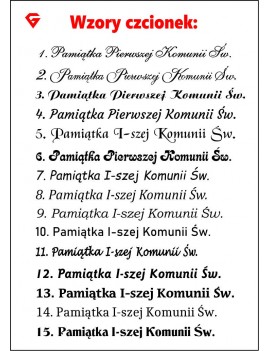 Mogą Państwo wybrać również krój czcionki. Jeżeli nie zostanie ona wybrana, wówczas używamy tej ze zdjęcia głównego.