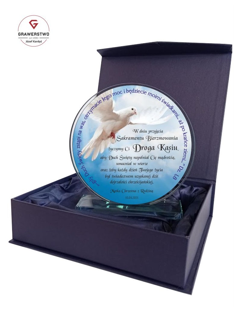 Pamiątka Sakramentu Bierzmowania na szkle. / B001