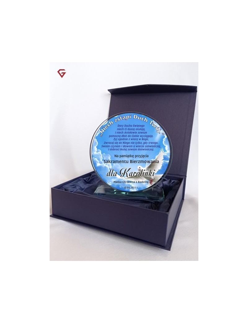 Pamiątka przystąpienia do Sakramentu Bierzmowania na szkle.