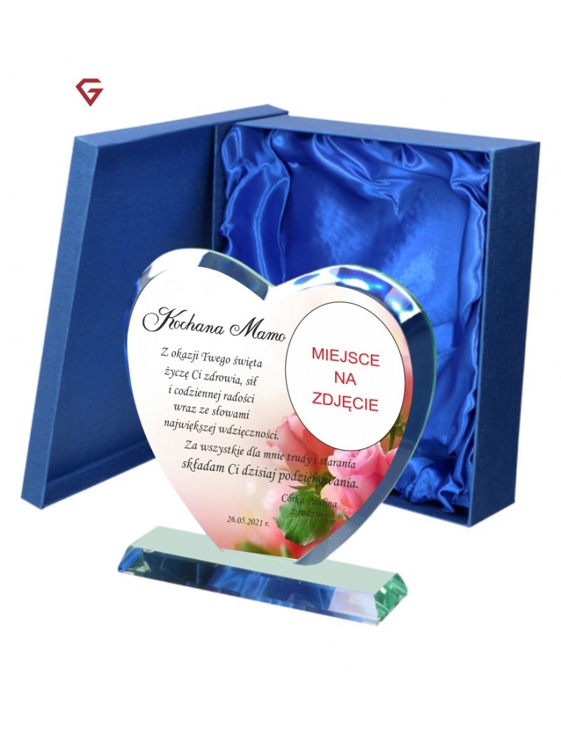 Piękne szkło, życzenia dla Mamy w dniu Jej święta ze zdjęciem.